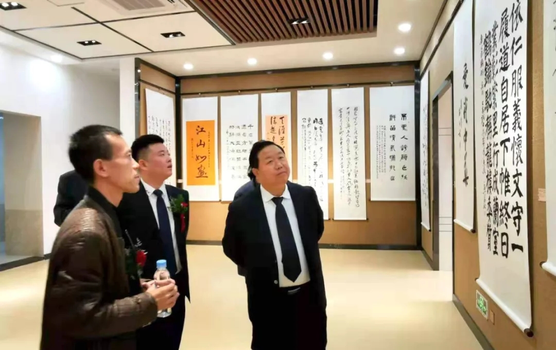 我公司作為這次齊魯青年軍旅書家聯展的獨家冠名單位,由公司董事長杜亞中先生和總經理杜大平先生組織了20余人書法愛好者參觀團參加了開幕式。