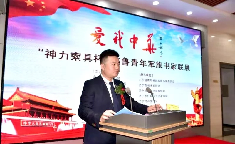 風雨砥礪,歲月如歌,衷心不改,執夢前行!為慶祝新中國成立70周年、中國人民解放軍建軍92周年,展示山東省青年軍旅書家隊伍的整體藝術創作水平和良好精神風貌,經山東省文學藝術界聯合會批準,山東省書法家協會、山東省青年書法家協會、濟寧市文學藝術界聯合會、濟寧市文化和旅游局共同主辦,山東省青年書法家協會軍旅書家委員會、濟寧市書法家協會、濟寧市青年書法家協會、濟寧寸山堂文化共同承辦,山東神力索具有限公司獨家冠名的“愛我中華·神力索具杯”齊魯青年軍旅書家聯展,于10月18日上午10時在山東濟寧市群眾藝術館隆重舉行。