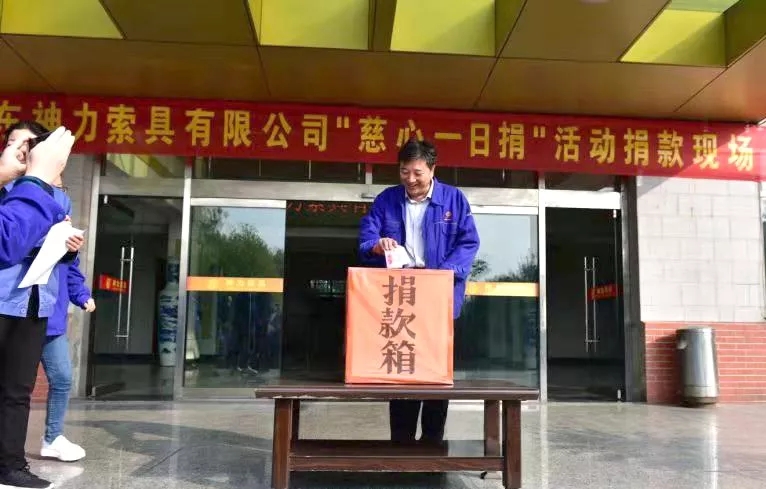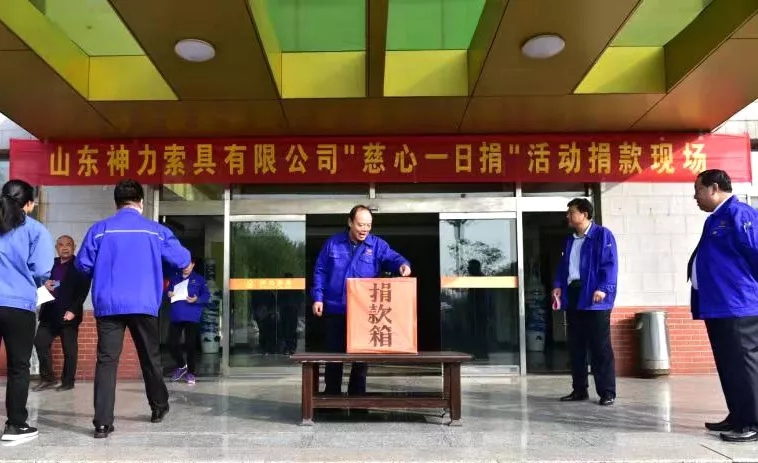 樂善好施、扶貧幫困是中華民族的傳統美德;扶危濟困,積德行善,是中華民族的優良傳統,更是社會文明與進步的標志。10月19日,山東神力索具有限公司踐行社會主核心價值觀,秉承互幫互助,慈心為人,善舉濟世的理念,為大力弘揚民族傳統,由公司“慈心一日捐”活動組委會組織的愛心捐款活動在公司辦公樓前廣場舉行。