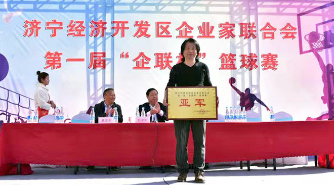 為豐富廣大員工的文體娛樂生活,充分發揮員工們的團隊協作精神,提高員工的集體榮譽感,增強凝聚力、向心力,培育企業文化,促進廣大員工的身心健康,并給籃球愛好者提供一個展示青春的舞臺。2019年10月29日,由濟寧市經濟技術開發區企業家聯合會組織的第一屆“企聯杯”籃球聯賽在山東魯能光大有限公司隆重召開。我公司董事長、濟寧經濟技術開發區企業家聯合會會長杜亞中先生參加開幕式并致辭!