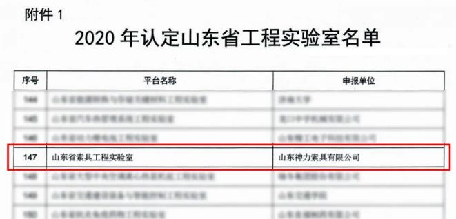近日,山東省發(fā)改委發(fā)布《關(guān)于公布2020年認定山東省工程實驗室(工程研究中心)名單的通知》,山東神力索具有限公司的索具性能檢測檢驗實驗室被認定為“山東省索具工程實驗室”。