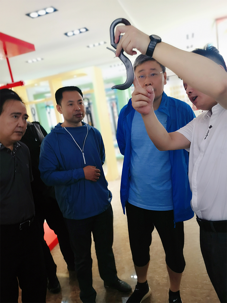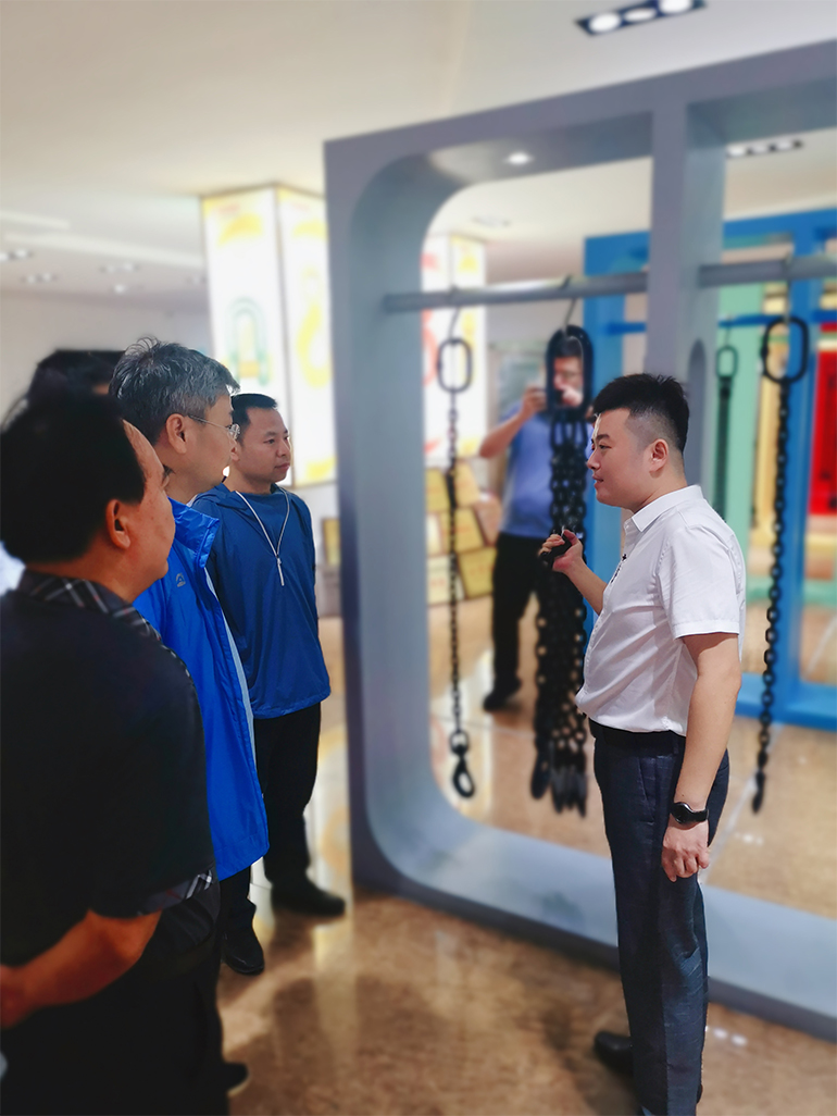 總經理杜大平、技術中心主任王秀剛等公司領導的陪同下,專家組對我公司主要生產分廠車間、關鍵生產工序、檢測中心、產品展廳、研發中心等部門進行了深入的參觀了解,詳細了解了索具產品的生產檢測工藝,對索具產品的研發、生產、檢測、使用等方面進行了細致的詢問了解。