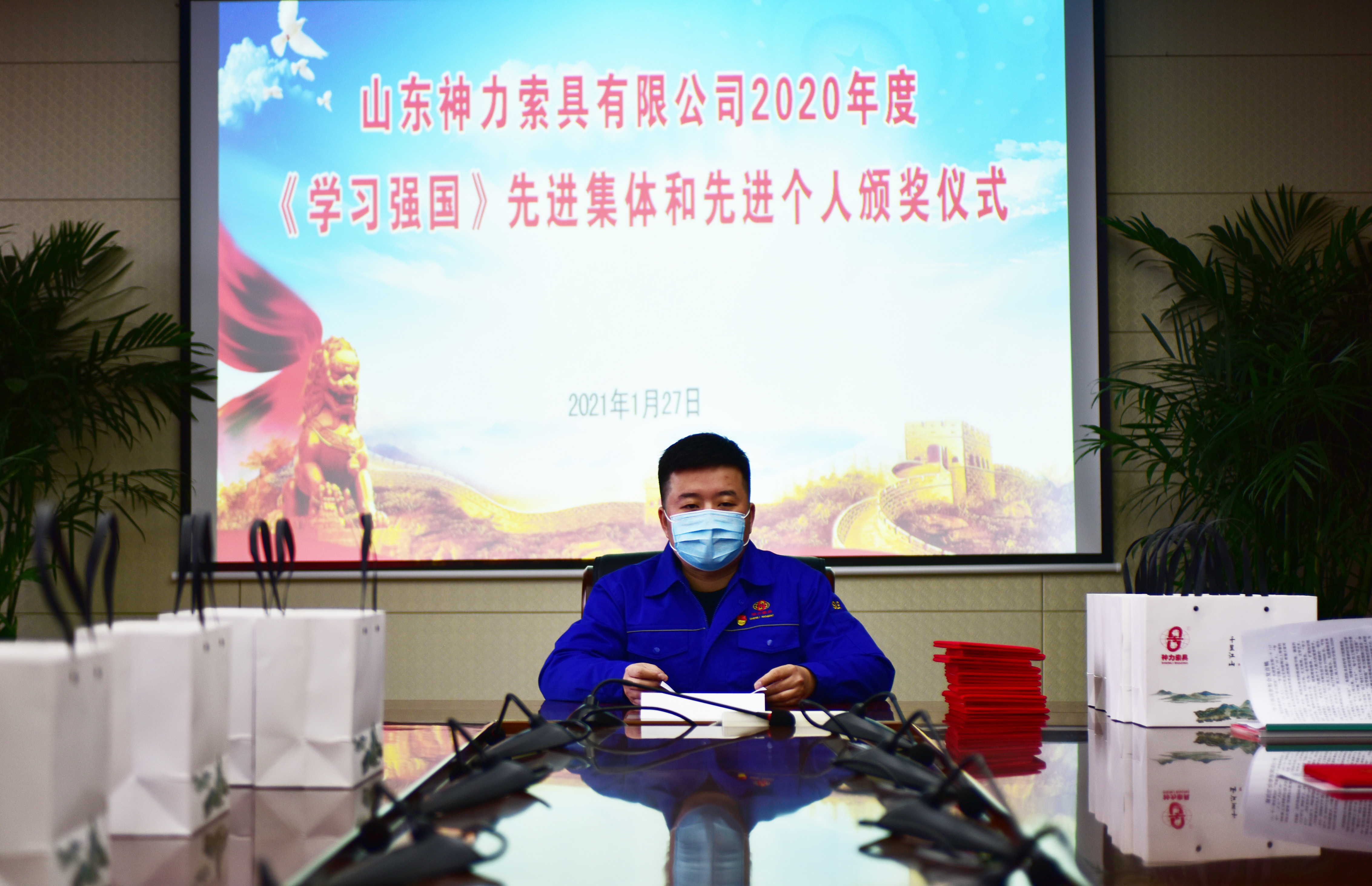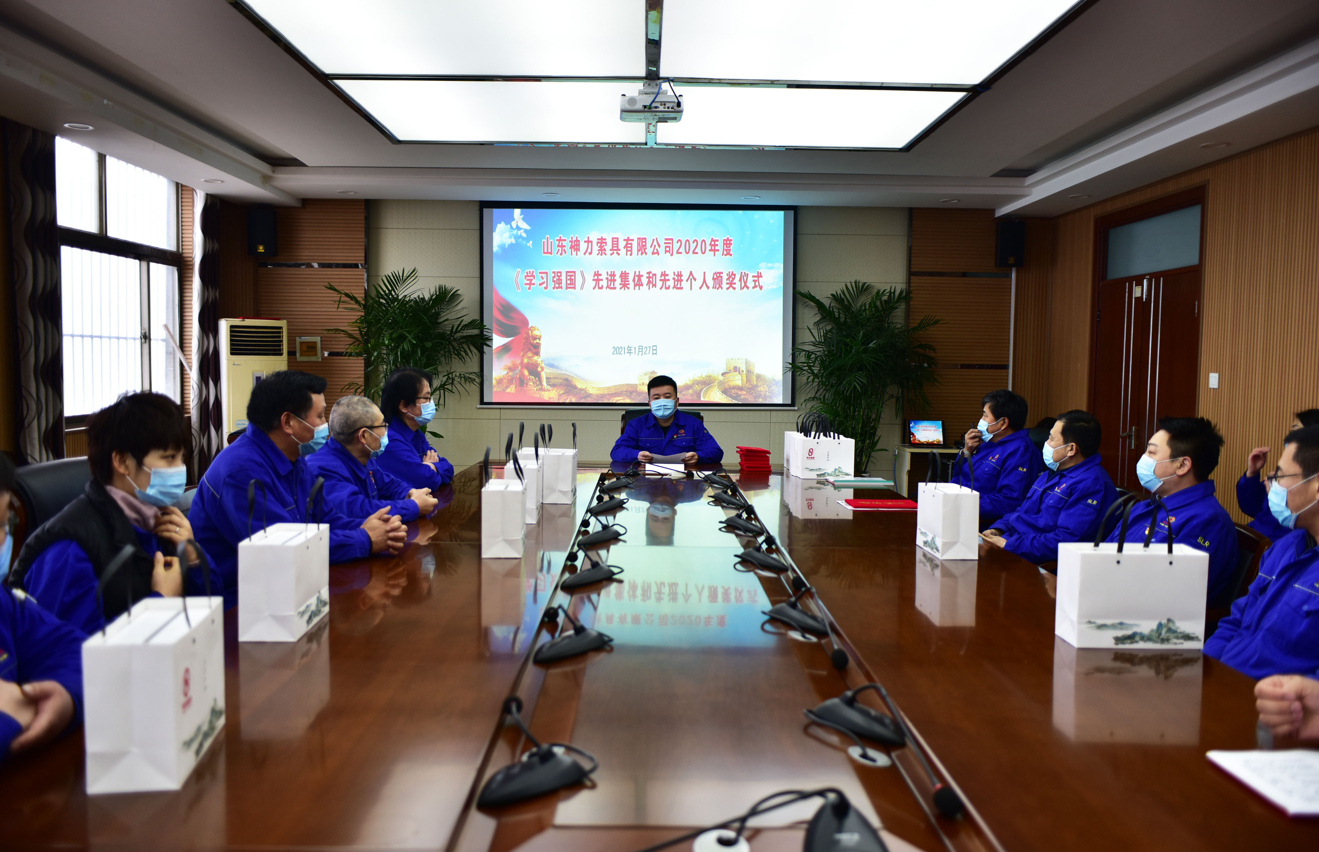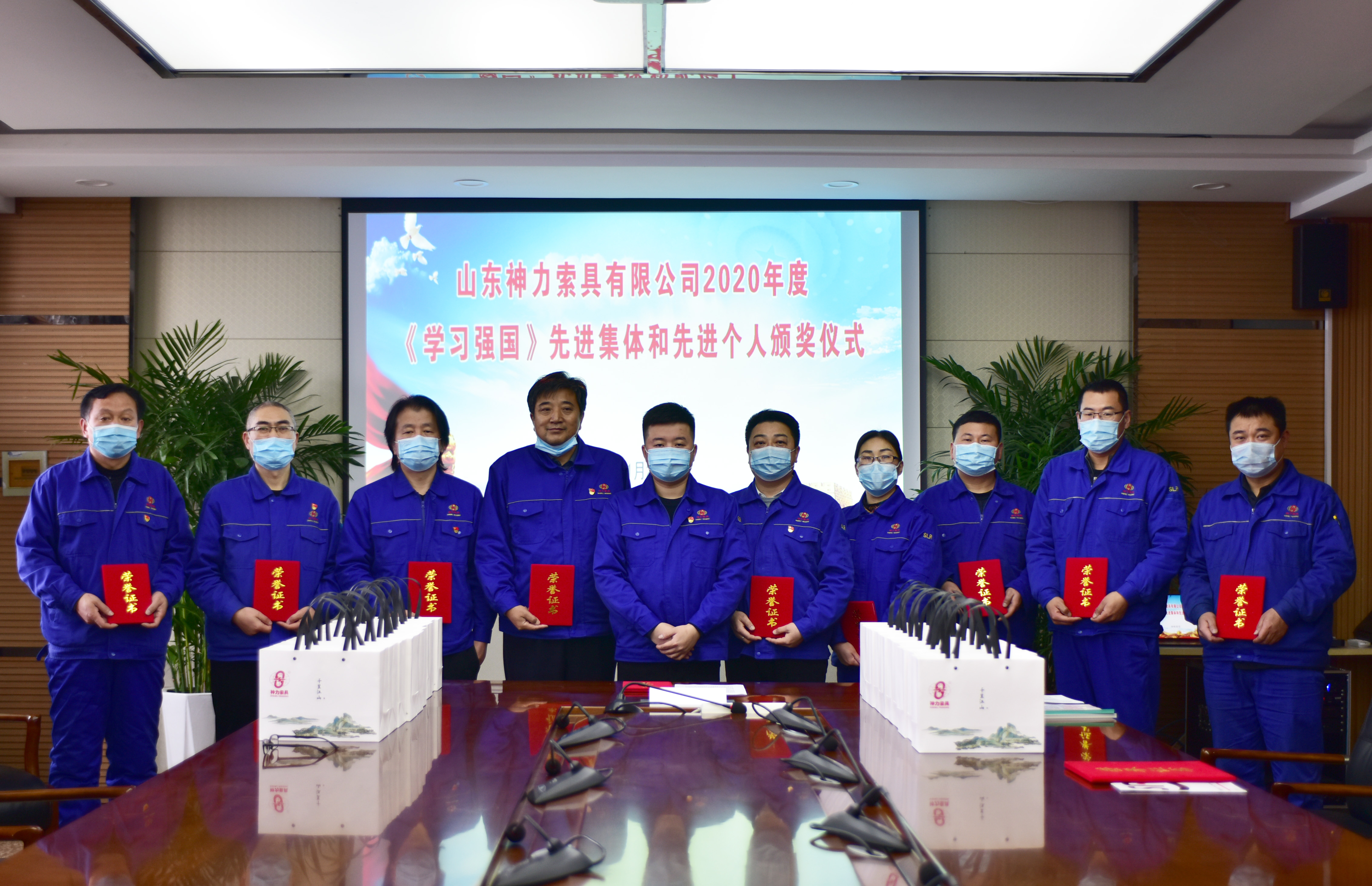 2021年1月27日,山東神力索具有限公司“2020年度學習強國先進集體和先進個人頒獎儀式”在公司黨員活動室舉行,“學習強國”學習平臺工作小組副組長、工會主席李廣德主持頒獎儀式,“學習強國”學習平臺工作小組副組長、總經理杜大平出席活動并為獲得先進集體的代表和先進個人頒獎。