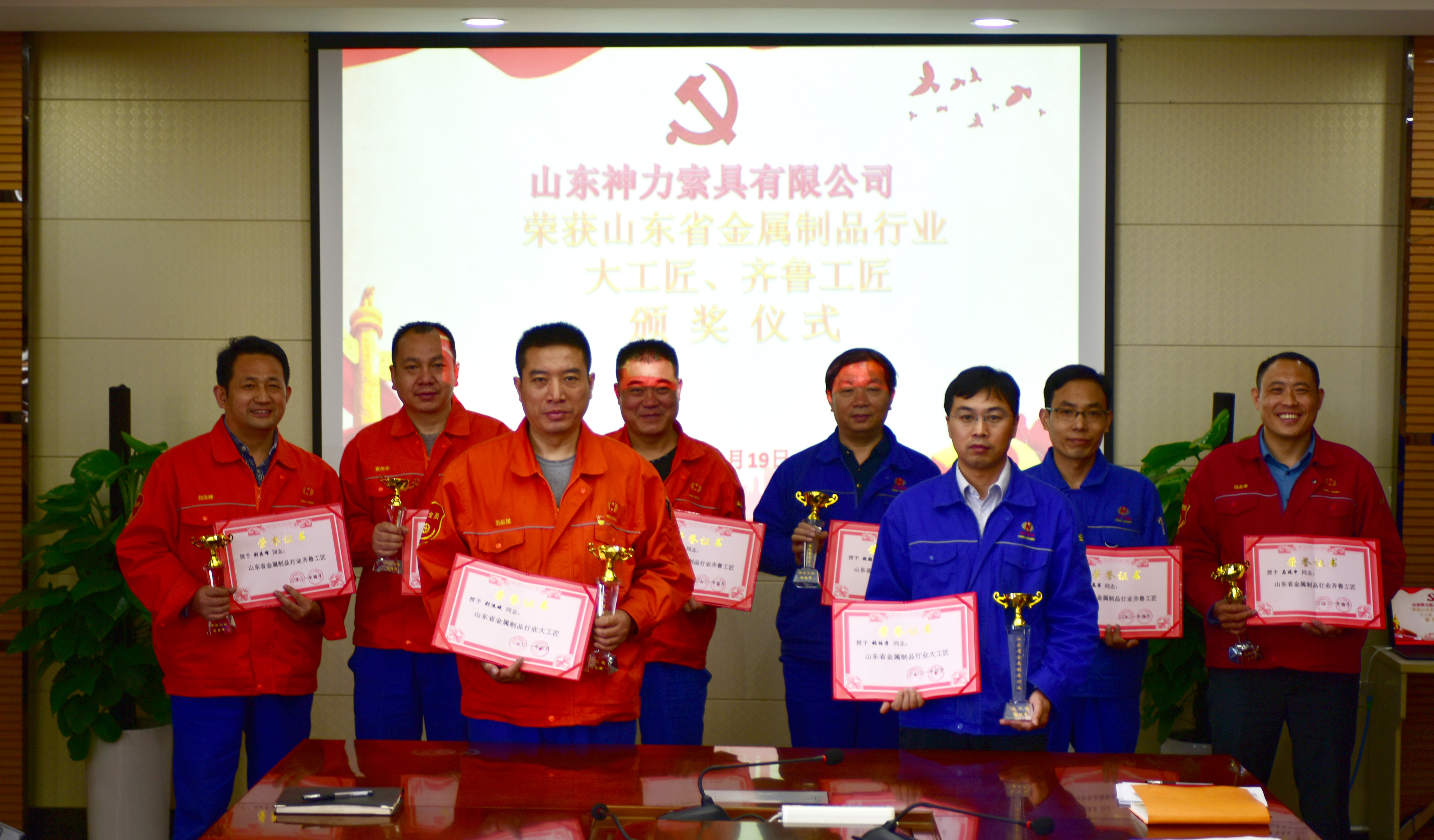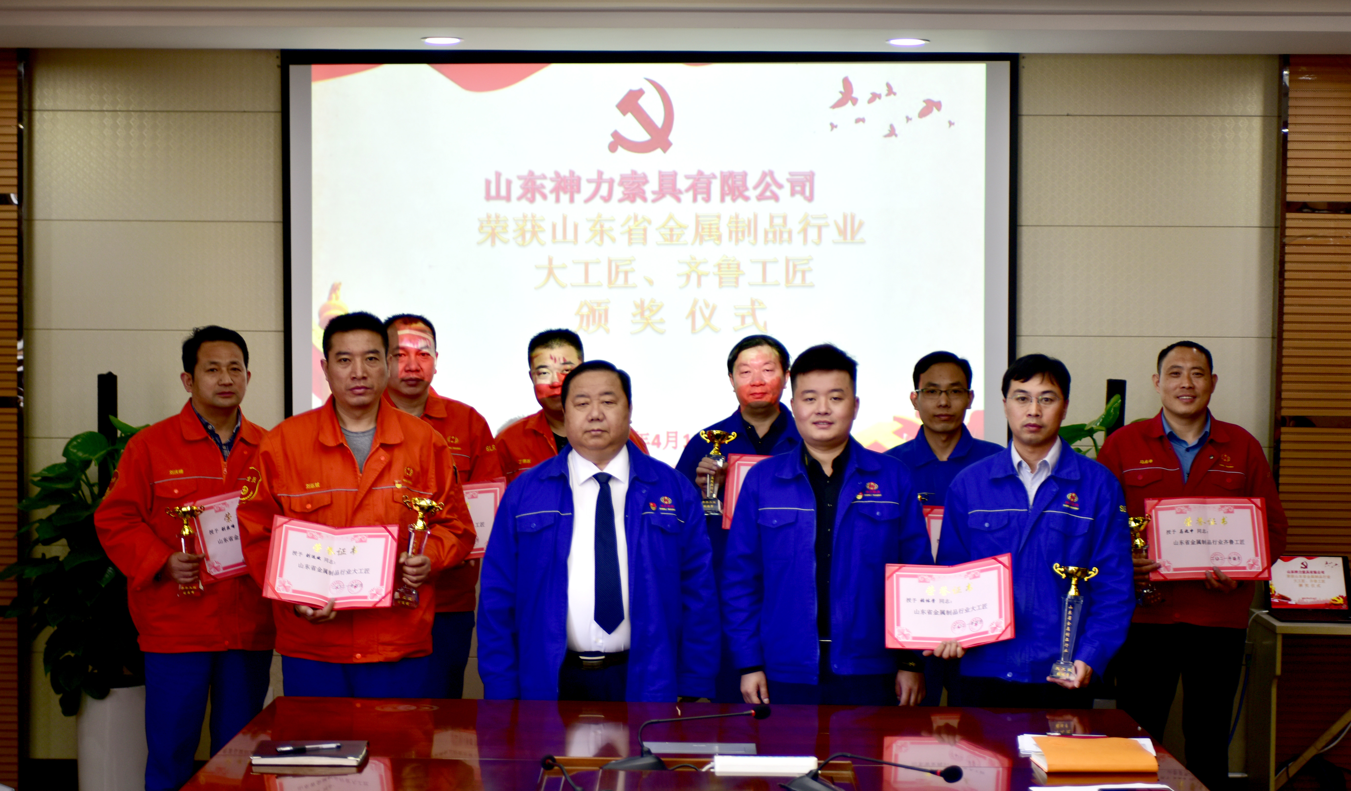 為深入貫徹習近平新時代中國特色社會主義思想,全面落實新時期產業工人隊伍建設改革目標任務,積極營造尊重知識、尊重人才的氖圍,提高廣大員工對“工匠精神”的認識,建設知識型、技能型、創新型勞動者大軍。4月19日上午,公司董事長杜亞中、總經理杜大平在公司辦公樓為“山東省金屬制品行業大工匠、齊魯工匠”獲得者頒發了榮譽證書和獎杯。
