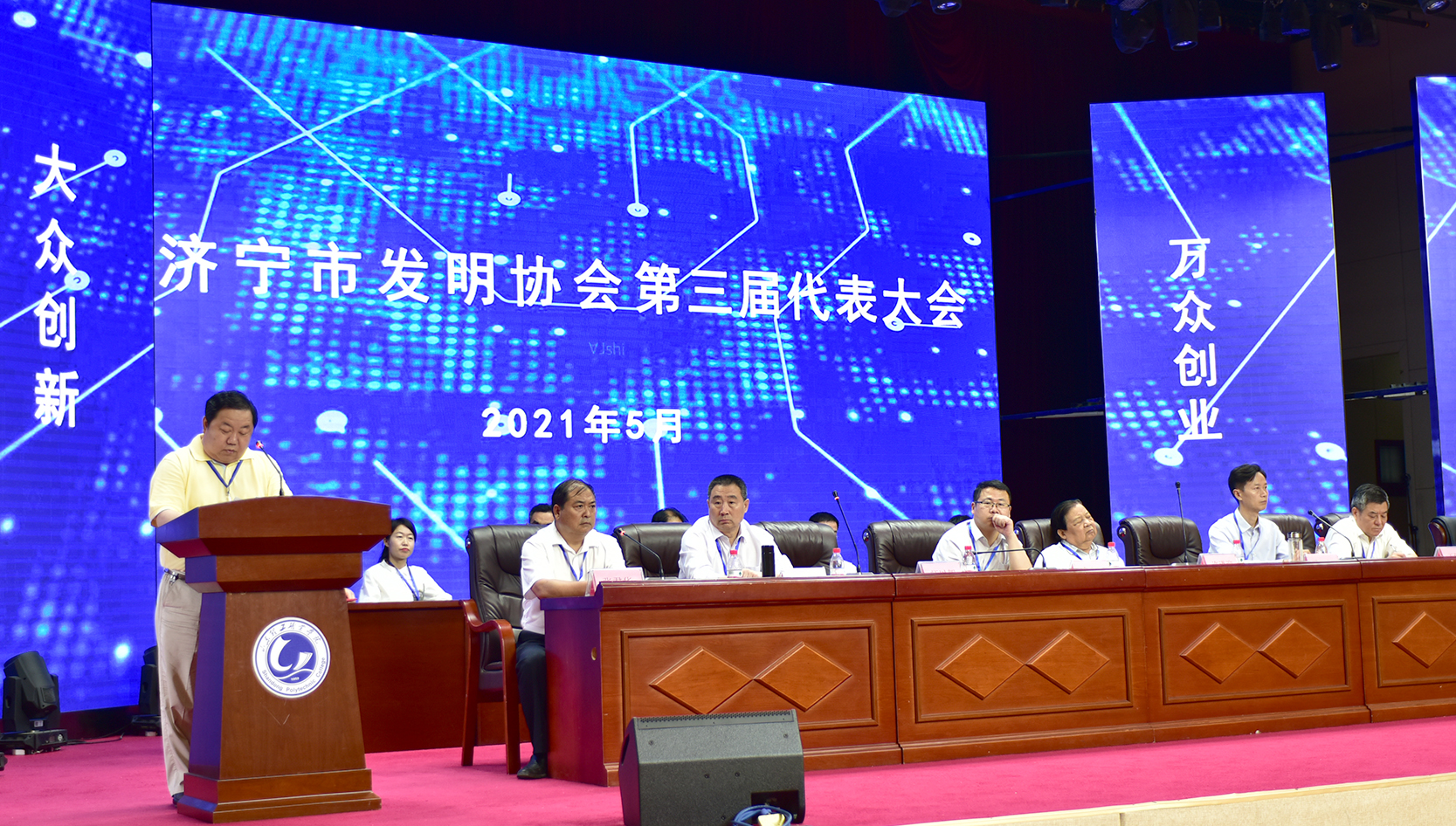 省發(fā)明協(xié)會(huì)領(lǐng)導(dǎo)李守運(yùn)會(huì)長、市人大原副主任許謙迎同志、山東理工職業(yè)學(xué)院許可書記、市知識產(chǎn)權(quán)事業(yè)發(fā)展中心領(lǐng)導(dǎo)閆永主任、發(fā)明協(xié)會(huì)新當(dāng)選會(huì)長杜亞中同志先后上臺致辭發(fā)言。