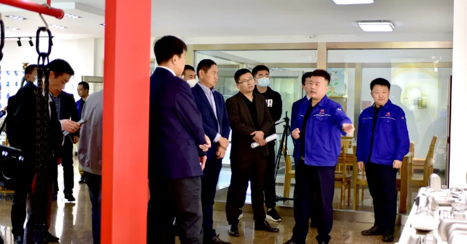 為貫徹落實《濟寧市工業互聯網示范標桿企業培育、評定、獎勵辦法》(濟工信【2021】64號)文件要求,大力實施工業互聯網牽手行動,培育一批工業互聯網示范標桿企業,推廣應用工業互聯網、區塊鏈、大數據和人工智能等新一代信息技術,打造一批應用標標桿、助推全市制造業高質量發展。10月14日,在山東理工職業學院科研處高琰副處長帶領下,濟寧市工業互聯網示范標桿培育專家組一行蒞臨山東神力索具有限公司調研,經開區經濟發展局林立強副局長、山東理工職業學院國際教育學院馮超副院長、神力索具杜大平總經理陪同調研。