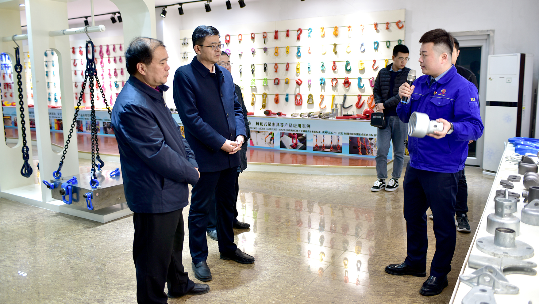 調研組成員首先在公司總經理杜大平、助企攀登干部馮超等領導陪同下在公司鍛造分廠現場查看自動化生產線,在機加工分廠實地觀摩了獲得2020年度“十佳”工業技術改造的“傳統制造產業MES數字化生產技術提升項目”改造現場。在公司產品展廳,杜總向調研組詳細介紹了公司產品的研發生產情況、應用場所,并將未來產品升級發展走向進行了匯報。