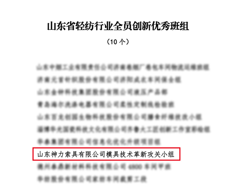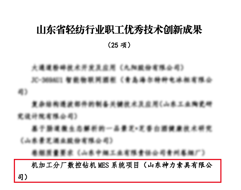 近日,山東省輕紡工會組織開展了2021年度全省輕紡行業全員創新競賽有關工作,山東神力索具有限公司模具技術革新攻關小組榮獲“山東省輕紡行業全員創新優秀班組”稱號、劉運斌創新工作室榮獲“山東省輕紡行業勞模和工匠人才創新工作室”稱號、機加工分廠數控鉆機MES系統項目榮獲“山東省輕紡行業職工優秀技術創新成果”稱號。