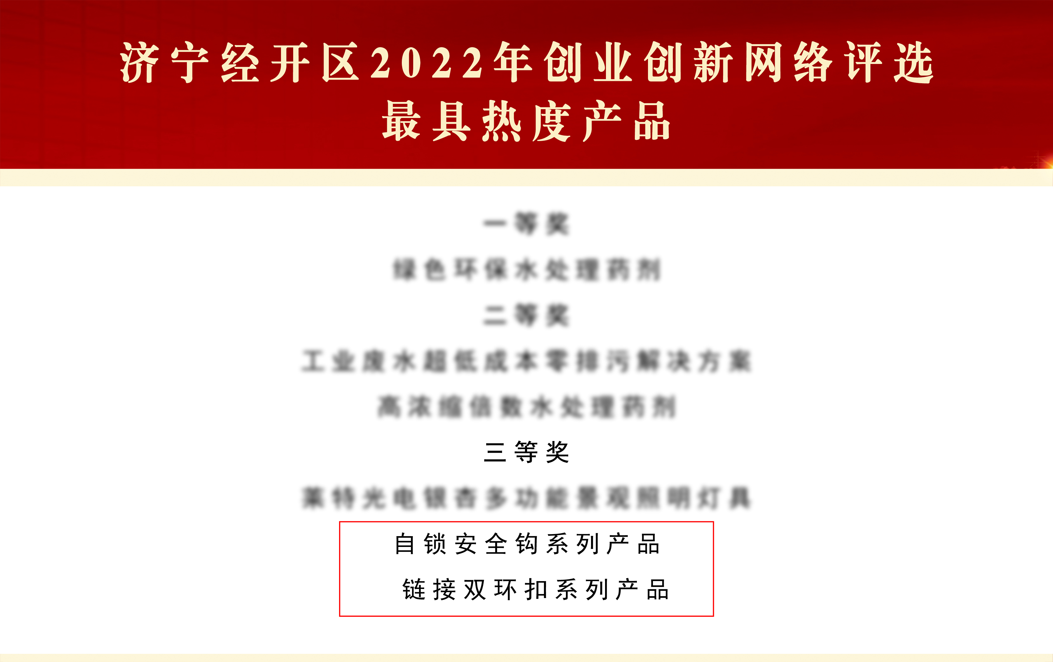 其中神力索具總經(jīng)理杜大平在此次評選中,榮獲“創(chuàng)業(yè)典型個人”二等獎;神力索具參評的“自鎖安全鉤系列產(chǎn)品”、“鏈接雙環(huán)扣系列產(chǎn)品”榮獲“最具熱度產(chǎn)品”三等獎。