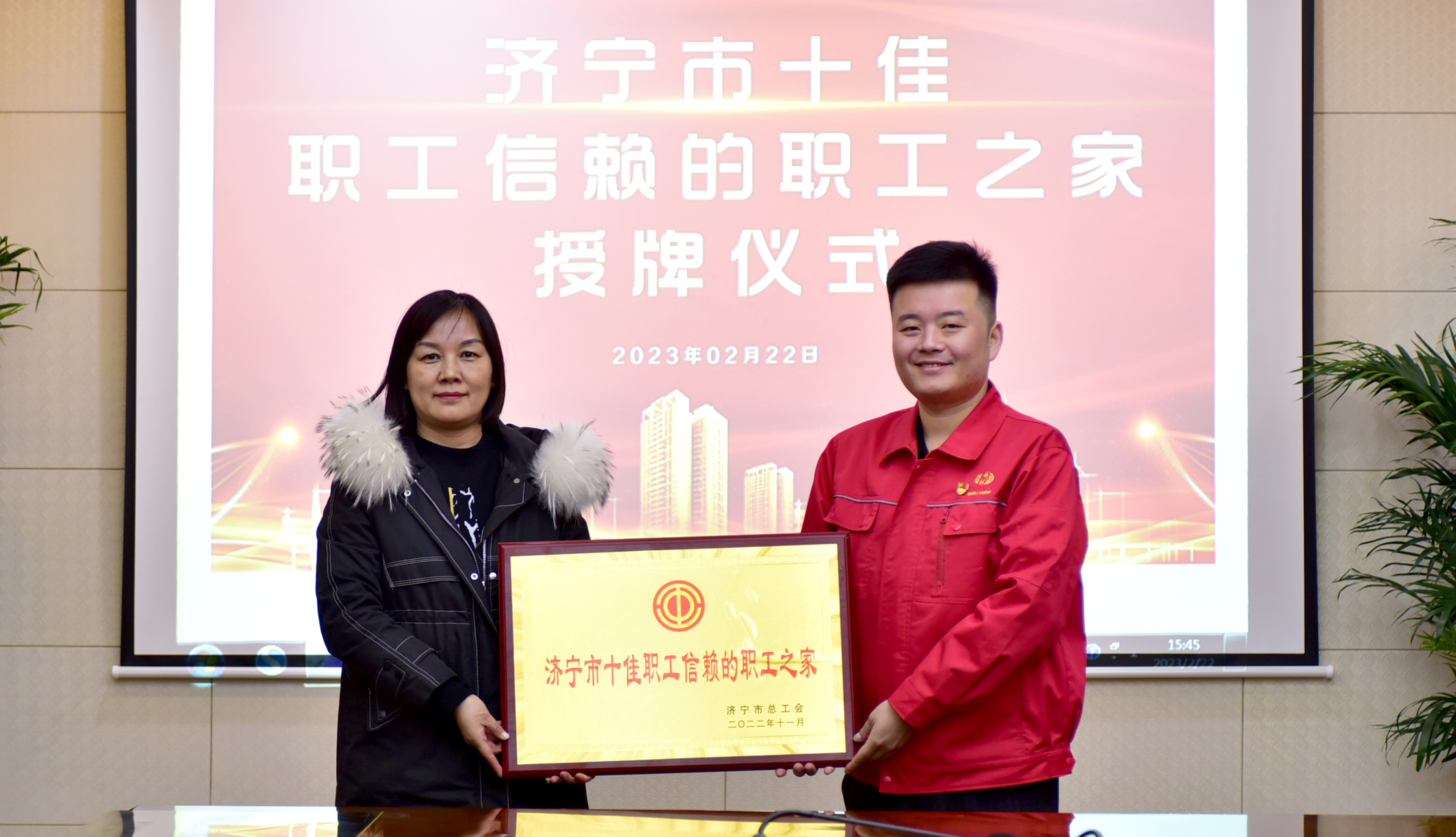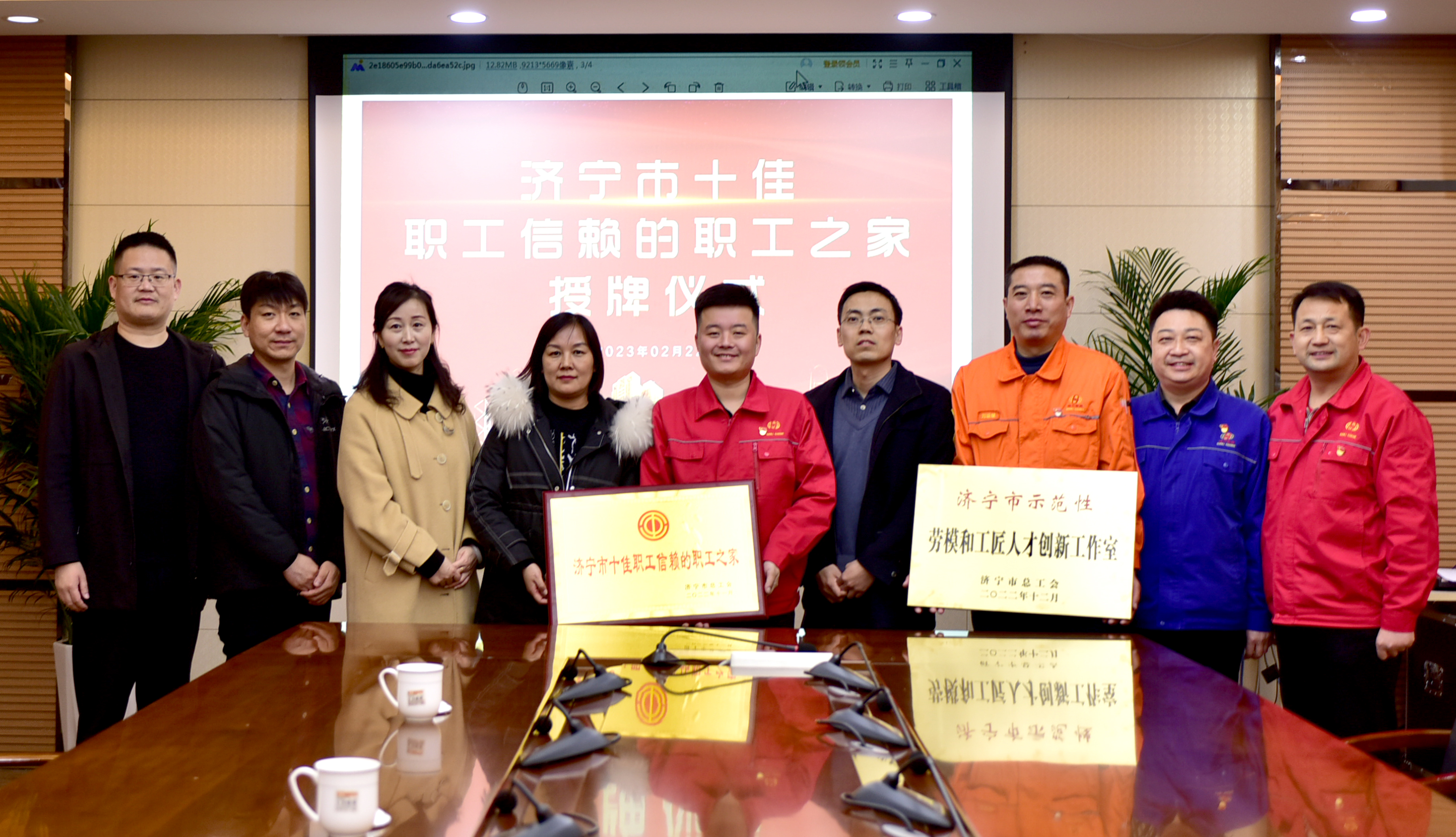 2月22日,“濟寧市示范性勞模和工匠創新工作室”、“濟寧市十佳職工信賴的職工之家”授牌儀式在神力索具舉行。濟寧經開區總工會常務副主席徐紅英、副主席岳海紅等區領導,市助企攀登駐企干部周浩及神力索具總經理杜大平、創新工作室組長劉運斌等公司領導參加授牌儀式。