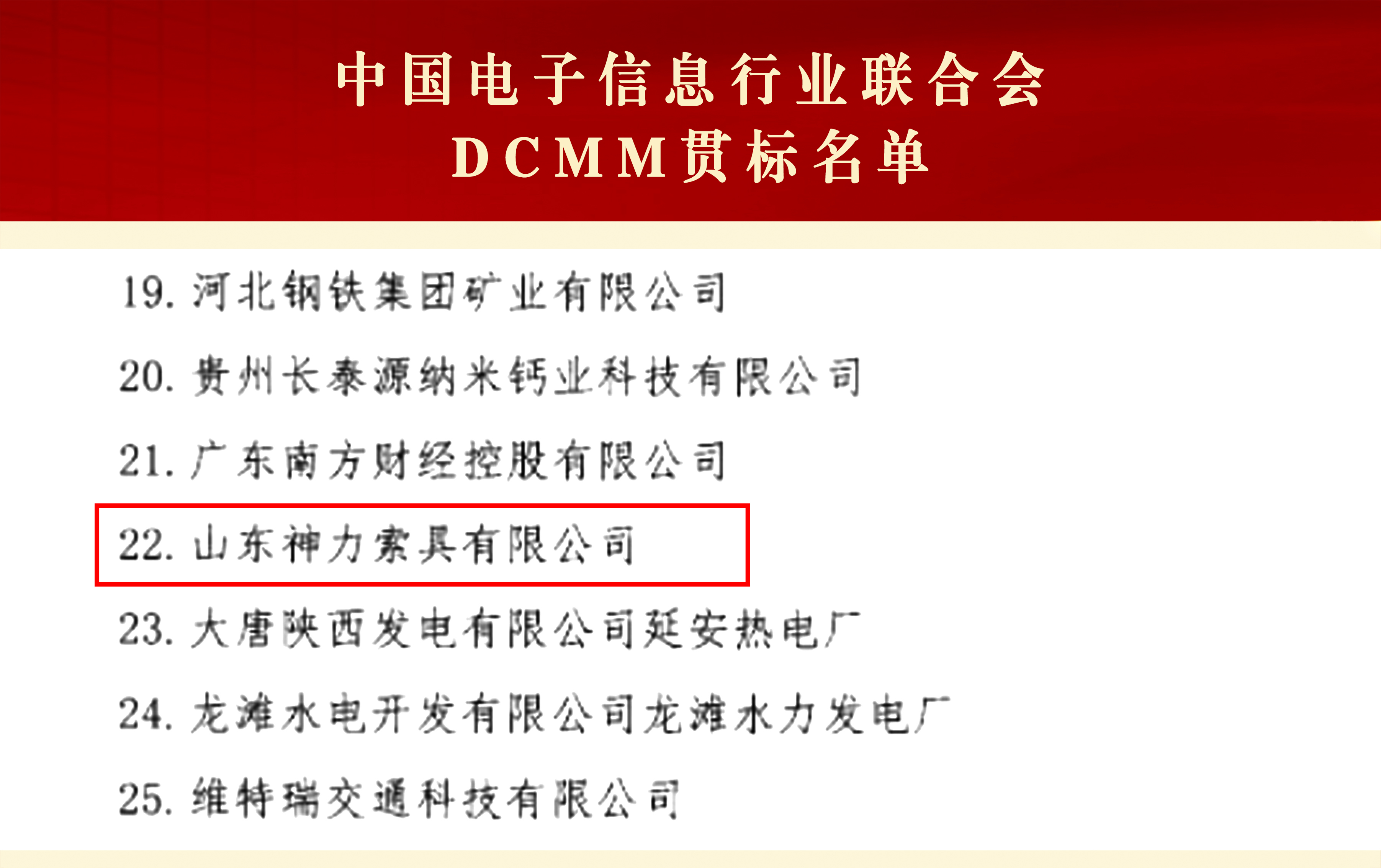 近日,中國電子信息行業(yè)聯(lián)合會公布了最新一批獲得國家數(shù)據(jù)管理能力成熟度等級證書的單位名單。經(jīng)過賽迪檢測認(rèn)證中心有限公司的專業(yè)評估、中國電子信息行業(yè)聯(lián)合會組織的專家評審,神力索具獲評國家數(shù)據(jù)管理能力成熟度為受管理級(二級)認(rèn)證單位,成為全國索具行業(yè)首家獲評數(shù)據(jù)管理能力成熟度二級的企業(yè)。