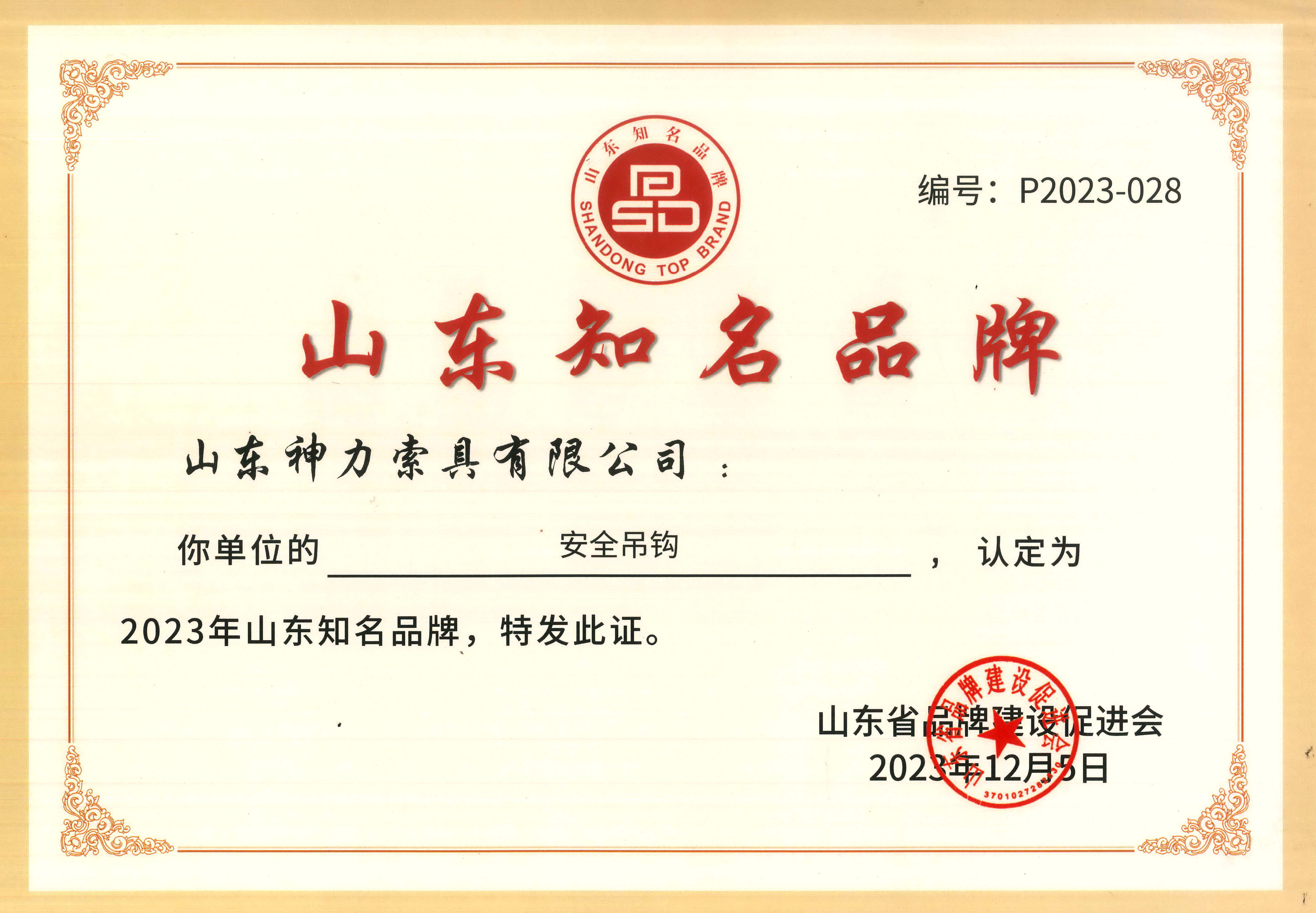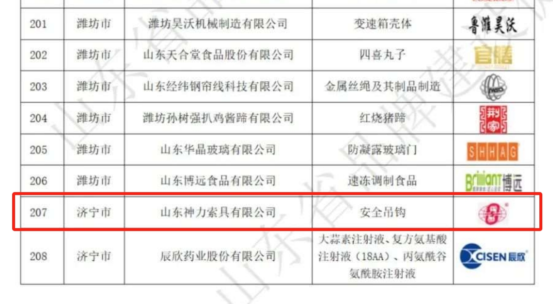 根據(jù)《山東知名品牌認定管理辦法》的規(guī)定,遵循科學、客觀、公開、公平、公正、自愿、不收費的原則,經(jīng)組織申報、資格審查、大數(shù)據(jù)信息挖掘、信息化系統(tǒng)平臺評審、專家評審、認定專家委員會審議等工作程序,神力索具安全吊鉤榜上有名,光榮入選“山東知名品牌(產(chǎn)品)認定名單”。
