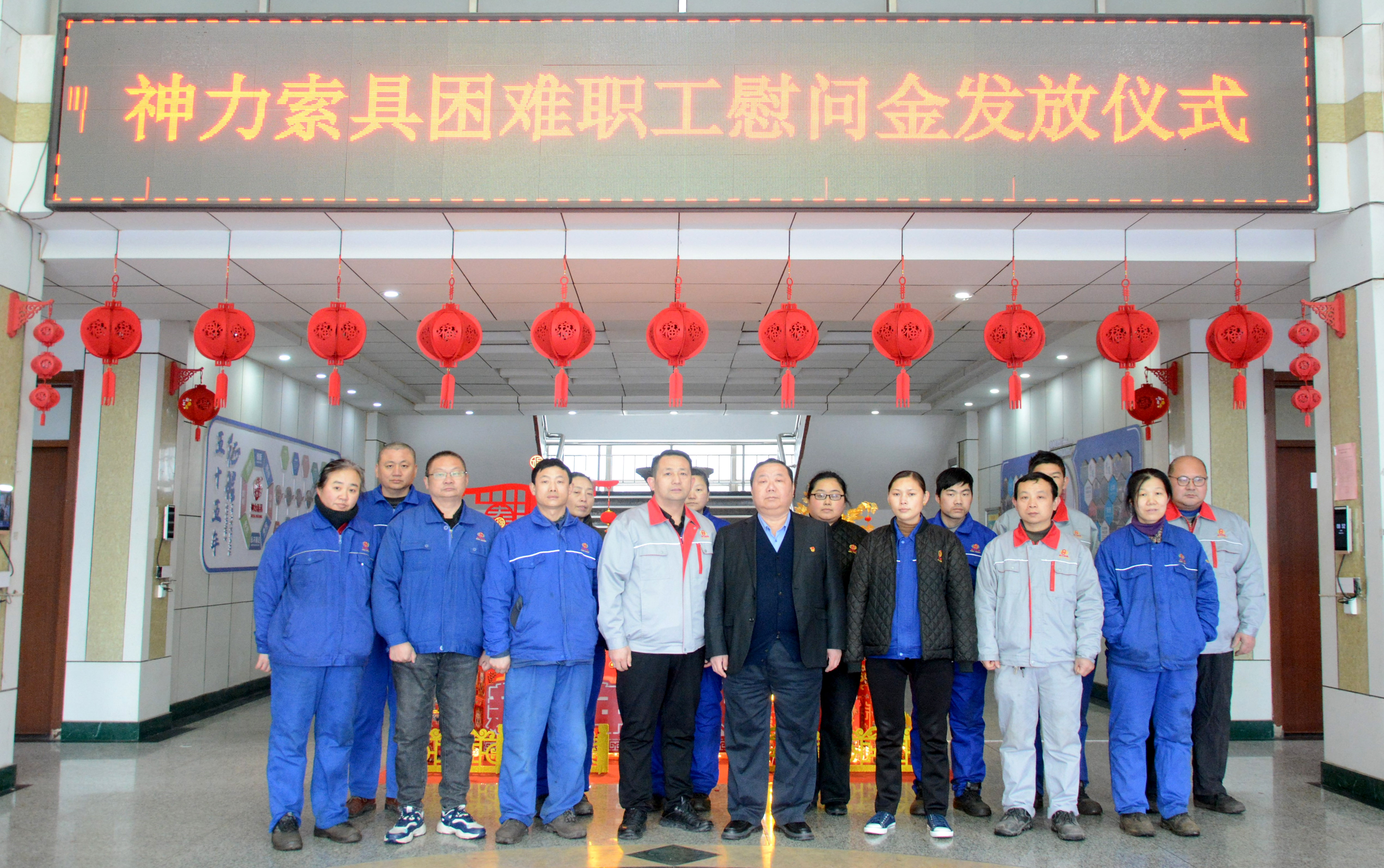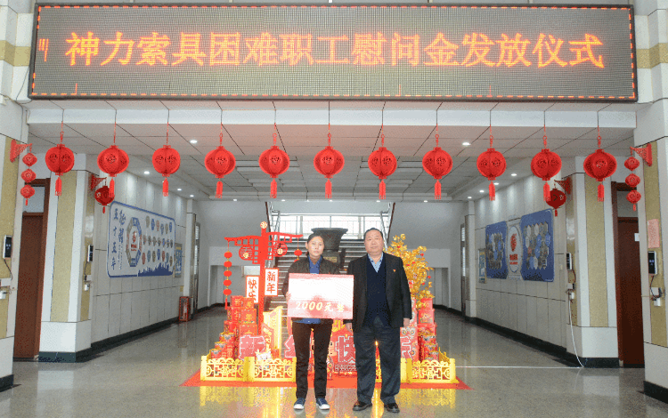 值此2024年春節來臨之際,在神力索具董事長杜亞中、總經理杜大平授意下,公司工會在全公司范圍內組織發布了困難職工摸排工作,共確定15名因本人或近親屬大病等原因致困的職工。公司根據實際情況為其發放2000元、1000元的愛心救濟金,本次共計發放救濟金17000元。困難職工紛紛表示:感恩公司、感謝董事長和總經理給予我們的幫助,我們一定認真工作以實際行動來回報公司。