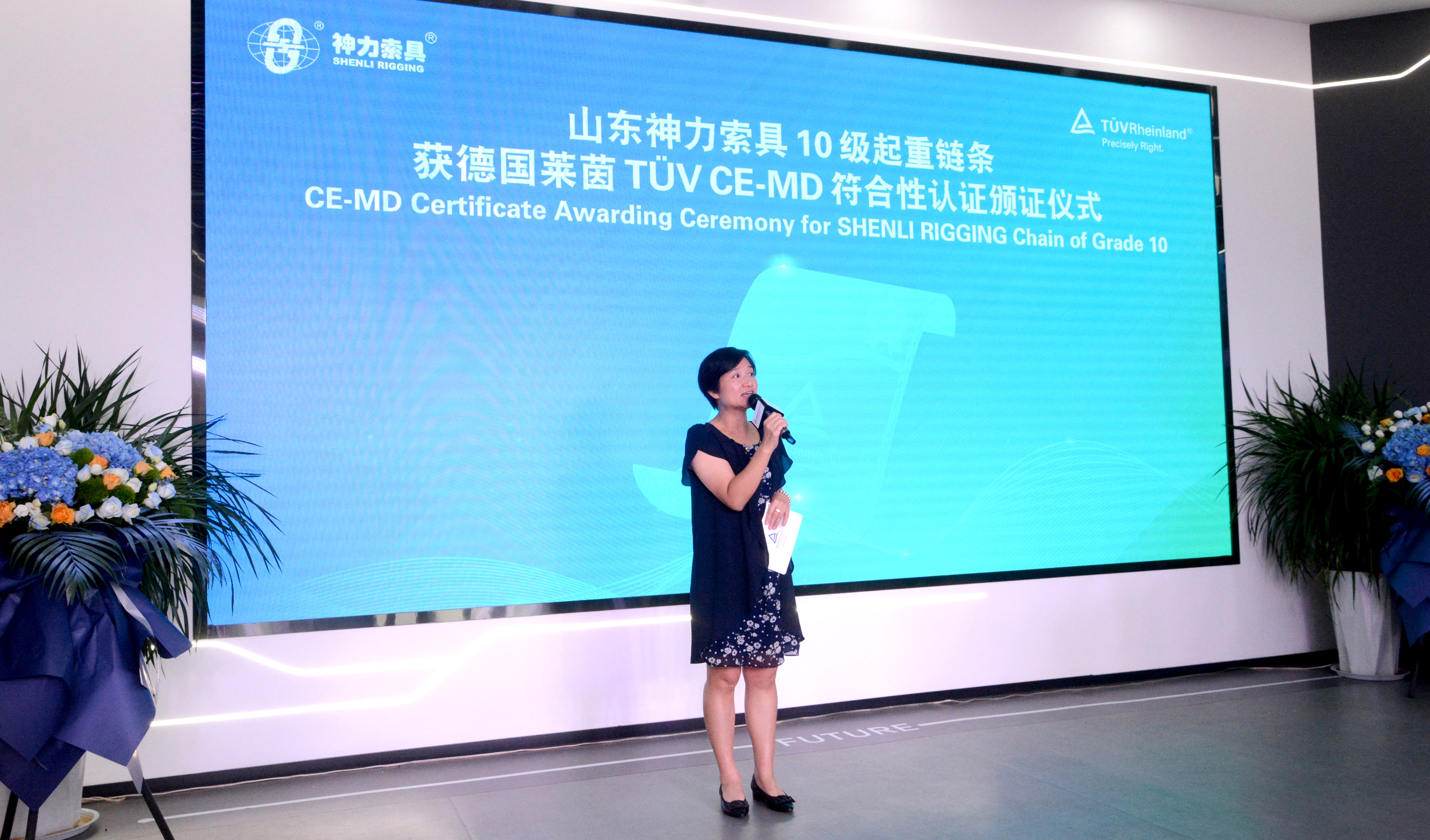 TÜV萊茵代表萊茵大中華區(qū)輕工產品服務副總裁熊劍蓉在致辭中表示,此次授牌是萊茵與神力索具合作的全新突破,10級起重鏈條的符合性認證在歐盟當屬首家,萊茵將繼續(xù)不斷探索與神力索具深度合作,向企業(yè)低碳生產、高質量發(fā)展、轉型升級等探索更多全新合作模式,為神力索具提供更全面、更貼合企業(yè)發(fā)展現(xiàn)狀的個性化服務,為企業(yè)轉型上市、可持續(xù)發(fā)展探索持續(xù)加力,贏得更加廣泛長久的合作機會。
