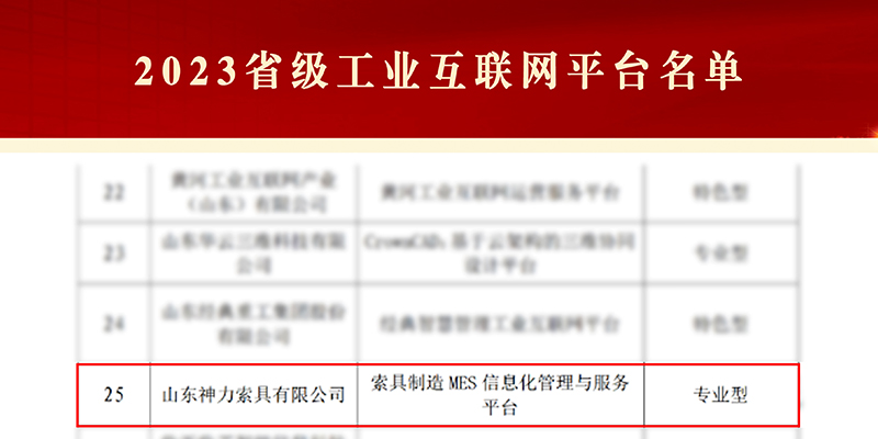 喜訊!神力索具成功入選“2023年省級工業互聯網平臺”