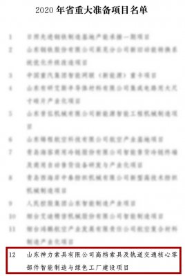 2020年省重大準備項目名單中,山東神力索具有限公司榜上有名,我公司提出的“高檔索具及軌道交通核心零部件智能制造與綠色工廠建設項目”得到省市區各級政府的肯定和支持,成功...