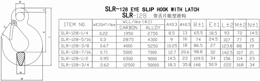 SLR128 43級和70級含舌眼型滑鉤
